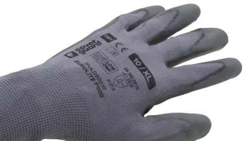EUROLITE P500 kesztyű, * Varrás nélküli, szürke, 13-as kötésű, finom poliamid védőkesztyű* Tenyerén szürke poliuretán mártás dmf szint < 30ppm; kötött csukló; tapintási index; vdma teszt eredményei: - oldószer alapú festék: a kesztyűk megfelelnek minden osztálynak (a1, a2 és a3) -> vdma24364-a1/a2/a3-l - vízbázisú festék: a kesztyűk minden osztálynak (a1, a2) megfelelnek és a3) --> vdma24364-a1/a2-w