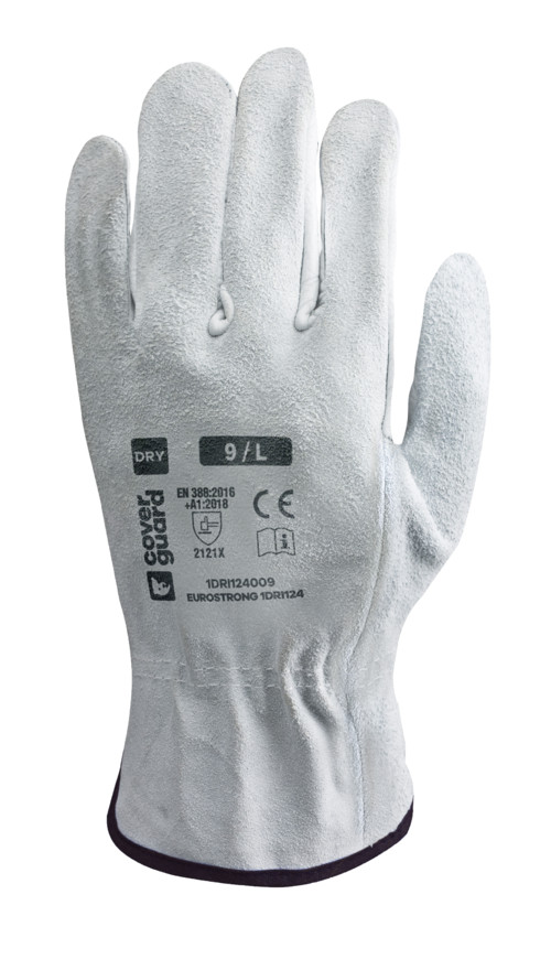 Sofőrkesztyű, tenyér és mutatóujj szín bivalybőrből Hasított bőr kézhát Gumírozott mandzsetta EN 388:2016 2121x