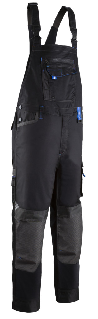-Twill (sávoly szövés): 65% poliészter/ 32% pamut / 3% elasztán - 250 g/m2 + poliamid/sztreccs betétek + díszített Oxford 300D Magas hátrész 9 zseb 2 szerszámtartó hurokGumírozott vállpántok Elasztikus derék Sztreccs betét a lábköznél Térdvédő zsebek Kontraszt színű elemek Száron még 5 cm-es lehajtási lehetőségRegular fitEN 14404: 2. típus