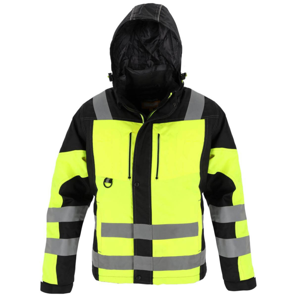 LOGIC bélelt kabát vízálló OXFORD anyagból (100% poliészter belül PU-val impregnálva). Rögzítés cipzárral, amelyet egy nyomógombos szalag borít. Számos funkcionális zseb, köztük külső zsebek: a mellkason cipzárral, zsebek a tartozékok számára, két alsó zseb és belső zsebek: egy hálós zseb a téli kiegészítőknek, egy okostelefon zseb tépőzárral és egy belső mellkasi zseb cipzárral. Fényvisszaverő szalagok a testen és az ujjakon javítják a láthatóságot. Levehető, bélelt kapucni fényvisszaverő elemekkel, rugalmas szalagokkal és dugókkal a teljes beállítás és a legjobb illeszkedés érdekében. Magas szélálló gallér belső puha polár szegéllyel. Mandzsetta mandzsettával és állítható tépőzárral rögzíthető. Steppelt poliészter bélés. Vízálló varratok szalaggal lezárva. EN ISO 13688:2013 Méretek S-XXXL-től. Színek: sárga HV/fekete, narancssárga HV/fekete