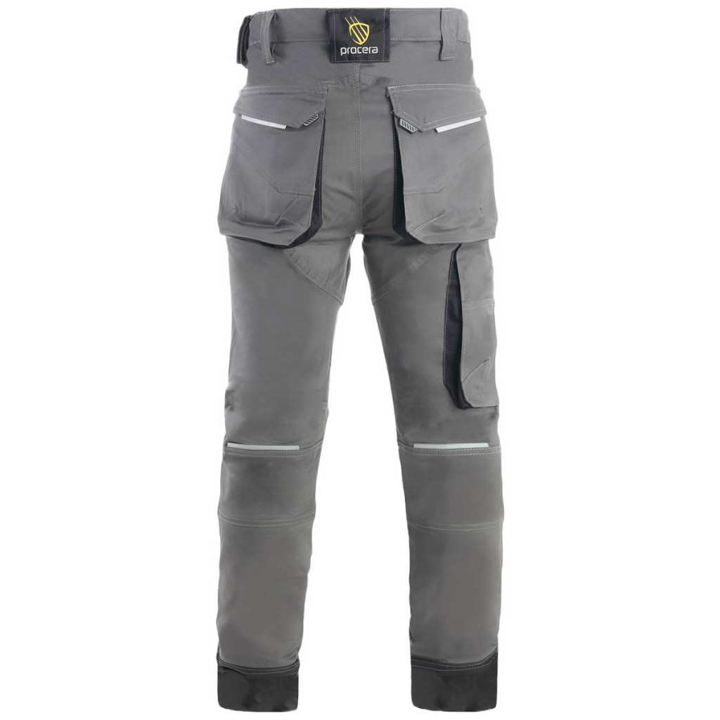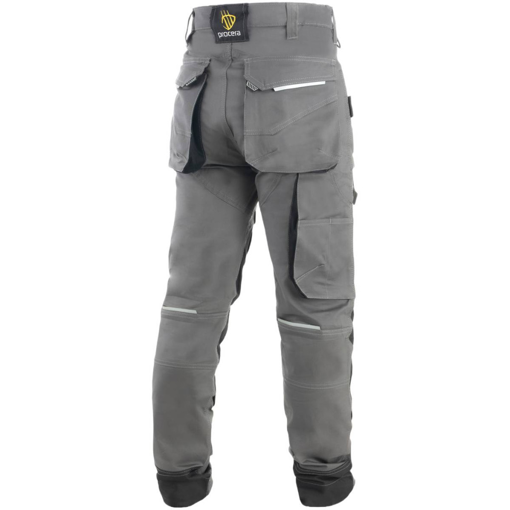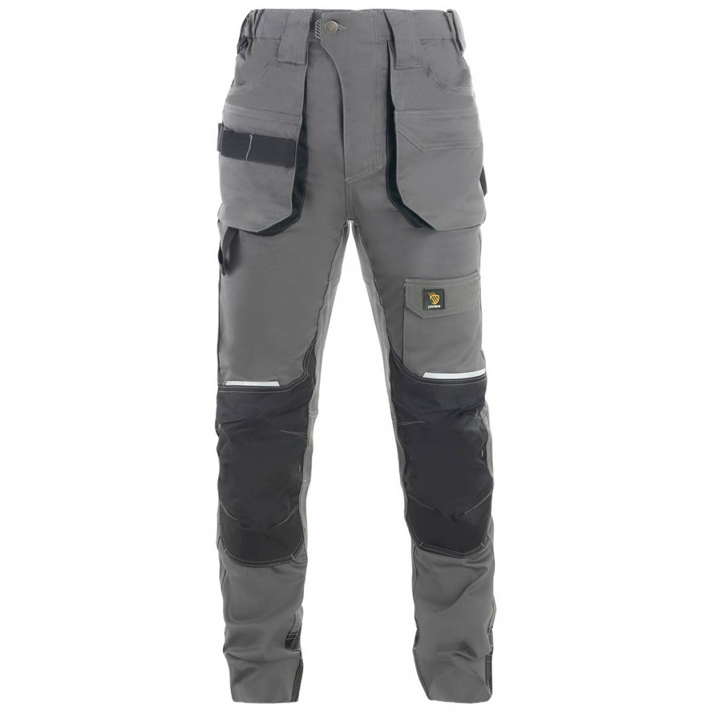 270 g/m súlyú, 98% pamutból és 2% elasztánból álló, elasztikus, légies anyagból készült MECHANIC nadrág modern, karcsúsított szabással. Sok funkcionális zseb, beleértve az elülső zsebeket, a tépőzáras fülekkel borított hátsó zsebeket, egy csomagtartó zsebet, egy szalagot a szerszámok (pl. kalapács) felakasztására stb. Kopásgátló anyaggal ellátott megerősítések a zsebeken és a térdeken, térdvédők használatával. Megerősítő csavarok és háromszoros varrás a tartósság érdekében. További fényvisszaverő elemek. Minden nadrág külön csomagban van, akasztóval. Méretek S/48-2XL/58-ig.