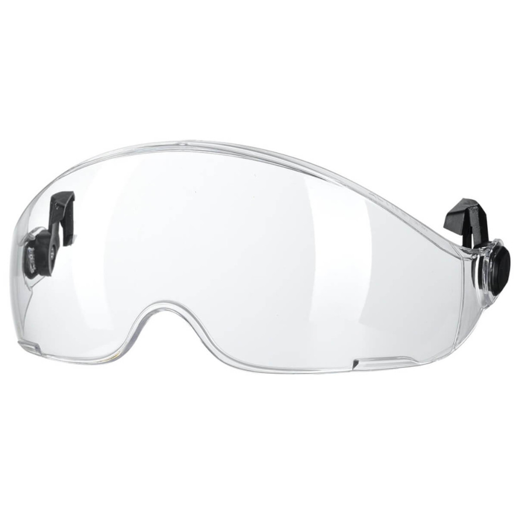 Sallet Visor F-4001 szemvédő a Sallet sisakhoz, átlátszó, színtelen polikarbonátból, karcálló bevonattal. Használaton kívül a felső helyzetbe állítható és gyorsan leengedhető munkahelyzetbe. Könnyen rögzíthető a sisakra 2 retesszel. Szemüveggel használható. Megfelel az EN 166 1B szabványnak