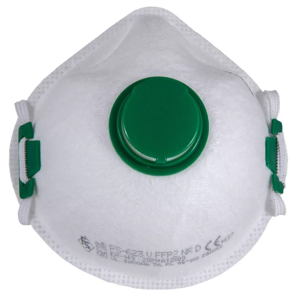 SZŰRŐ FÉLMASZK Az FS 623V FFP2 NO D SERIES 600 a szűrőszolgáltatás kínálatának legújabb terméke. Megkülönböztetik őket az orrrész szorítómentes kialakítása fejpánt kapcsokkal kombinálva, amely garantálja a nagy tömítettséget, és ezért kiváló szűrési hatékonyságot, egyedülálló kényelmet, alacsony súlyt és kivételesen kedvező árat. Felhasználás: Közepesen mérgező szilárd részecskék, azbesztpor, réz, bárium, titán, vanádium, króm, mangán, fapor, 10% feletti szabad szilícium-dioxidot tartalmazó szénpor, bányászat, vegyipar és kohászati ipar (kipufogószelepes változat). További előnyök: Kiküszöböltük az orrcsipesz időigényes archoz igazítását, és minimálisra csökkentettük a párásodó szemüveg hatását. A 600-AS SOROZATÚ félálarcok kapcsokkal vannak felszerelve a fejpánt pántjainak hosszának beállításához, ami megkönnyíti a félálarc illeszkedését és ezáltal szorosságát. A beépített kilégzőszelep nagyon alacsony légzési ellenállást biztosít. Alkalmazása: A felhasználó légutak védelmére a légszennyező anyagok káros hatásai ellen szilárd és/vagy folyékony részecskék formájában, amelyek aeroszolt képeznek (por, füst, köd) 10 x NDS-ig. Összetétel: Félálarc tál: - Tűlyukasztott poliészter nem szőtt szövet - Olvadva fújt polipropilén nem szőtt szövet - Nem szőtt szövet borító Kiegészítő elemek: - Kilégzési szelep - Fejpánt kapcsok - Fejpánt