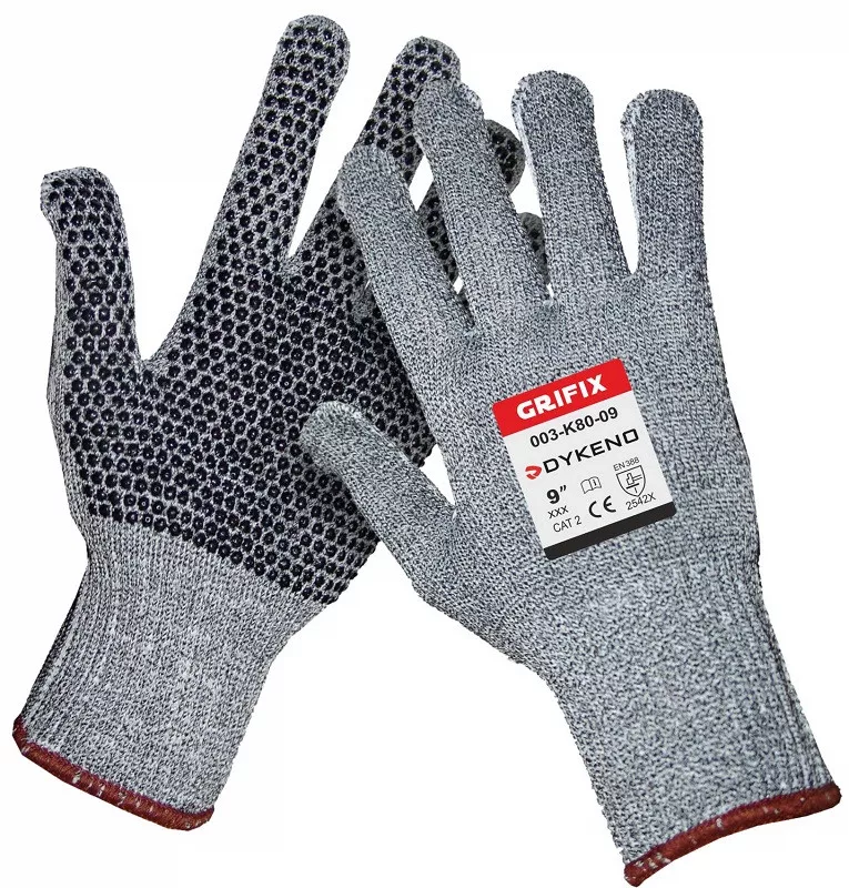 Anyag: speciális vágásálló fonallégáteresztő kesztyű speciális vágásálló szállacsúszásmentes PVC pöttyök a tenyéren és az ujjakonkötött rugalmas mandzsetta szegéllyelkiváló kopás- és szakadásállóságkiváló vágásállóságjó fogási tulajdonságoknagy rugalmasság és optimális kényelemBevonat: PVC pöttyökAnyag: speciális vágásálló fonalMéretek: 7 - 11EN 388: 2542X1/10/100