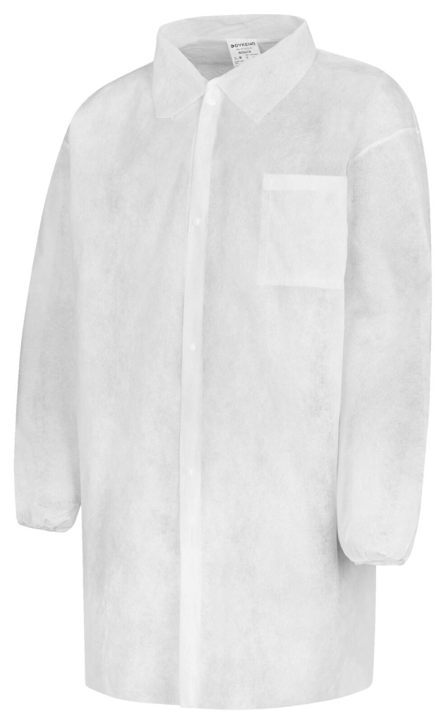 - egyszer használatos látogatói köpeny- rögzítés 4 PVC szegeccsel- gumik a hosszú ujjak végeinél- belső mellzseb- a szövet nem enged szálakat- a látogatók ruházatának és a termelésben lévő termékek védelmeMÉRETM - 2XLANYAG100% nem szőtt polipropilén (PP) 33 g/m2