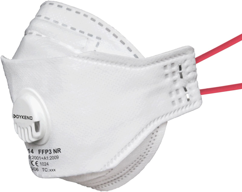 összecsukható légzőkészülékfinom porrészecskék ellenvízbázisú folyékony aeroszolok ellennem illékony anyagok és olajok részecskéi ellenműanyag kilégzőszeleppiros gumiszalagokvédelmi osztály FFP3 NRNR egyszeri használatra (egy műszakra)védelmi tényező 50x NPK-P-igEN 149:2001 + A1:2009