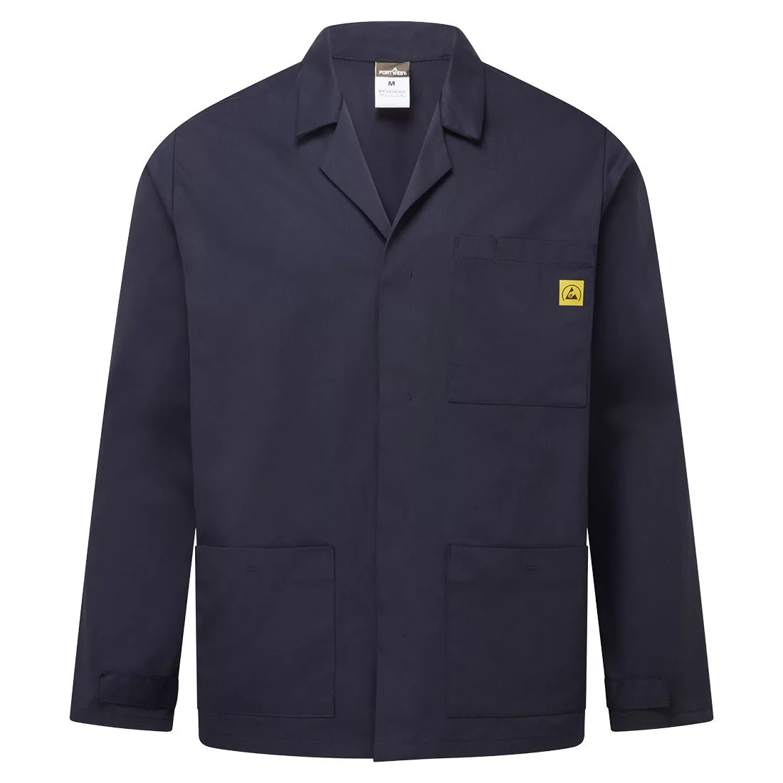 Anyagában antisztatikus kabát modell, mely megelőzi az elektrosztatikus kisüléseket. Kényelmes, ugyanakkor kiemelkedő védelmet biztosít. Jellemzői közé tartozik a rejtett patenros elülső rész, két alsó zseb, egy mellzseb és állítható mandzsetta.