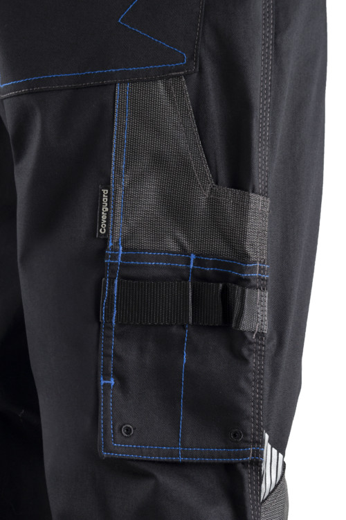 Twill (sávoly szövés): 65% GRS újrahasznosított poliészter/ 32% pamut / 3% elasztán - 250 g/m2 + poliamid / sztreccs betétek + Oxford 300D kiegészítők Megemelt derékrész 7 zseb 1 szerszámtartó hurok Sztreccs lépésbetét Térdvédő zsebek Kontrasztos színű felületek Tripla biztonsági varrás a száron +5 cm lehajtási lehetőség Regular fit EN 14404: 2-es típus