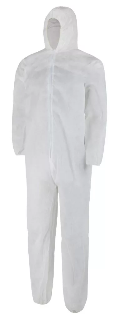 Conril egyszerhasználatos overállélegző, kapucnis védőruha 100% nem szőtt polipropilénbőlfinom porokkal és szennyeződésekkel szembeni védelemösszehúzó gumik a kapucnin, hátrészen, ujjak és nadrágszárak végénfehér szin (varratokkal és cipzárral együtt)Méretek: M - 4XLSZABVÁNYOK: ?EN ISO 13688