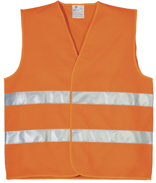 szellőző, könnyű 120 g/m2 poliészter anyag, jól láthatósági színekbenkettő, 5 cm széles, párhuzamos fényvisszaverő keresztcsíktépőzárral állítható bőség