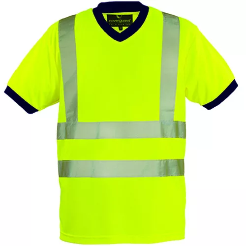 * V-nyakú rövid ujjú jólláthatósági póló* 140 g/m2 szellőző, könnyű 100% poliészter anyagegyenes vonalú szabás* 2 függőleges és 2 vízszintes, 5 cm széles, az EN ISO 20471 szabványnak megfelelő fényvisszaverő csík* SZÍN: sárga (7YAVY) és narancs (7YAVO)