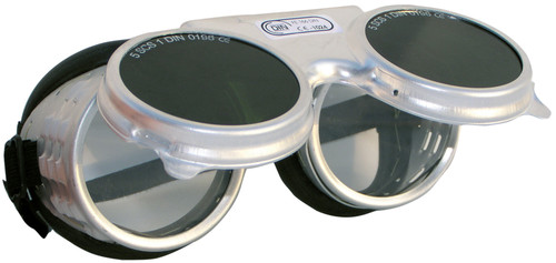 F109655 SB-1 Revalux felcsapható, gumipántos, fémkeretes hegesztő szemüveg * ø50mm átmérőjű, IR5-ös cserélhető üveg lánghegesztéshez, direkt ventillációs szellőzés
