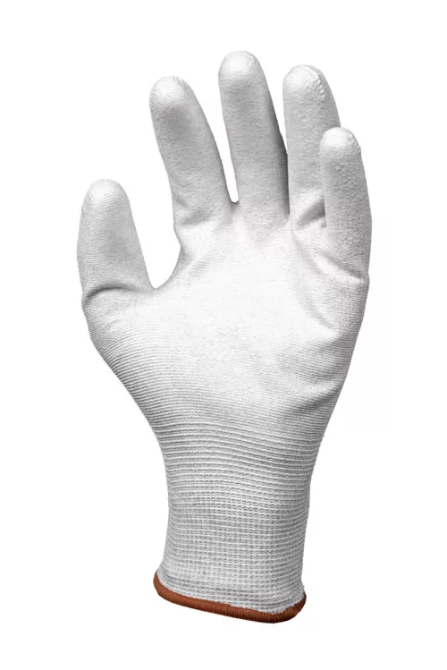 Szénszálas, rugalmas, kötött poliészter precíziós védőkesztyű, PU-val mártott tenyérrel és kötött mandzsettávalKiváló fogásbiztosságának köszönhetően tökéletesen alkalmas apró mikro-elektronikai alkatrészek kezeléséhez Megakadályozza az elektrosztatikus kisülést és tűz- és robbanásveszélyes környezetben is használható