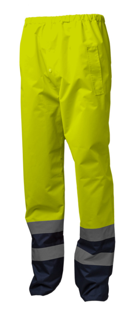 * poliuretánnal bevont, vízhatlan fluoreszcens Oxford 300D poliészter , 5 cm széles fényvisszaverő csíkok, hegesztett vízálló, biztonsági varratok* kabát: végig cipzáras álló gallér, patentos fedéssel* rejtett, speciális kialakítású viharkapucni, két oldalzseb, állítható derék, két függőleges és két vízszintes fényvisszaverő csík* nadrág: gumírozott derék, patenttal szűkíthető bokarész, két oldalzsebnyílás és slicc