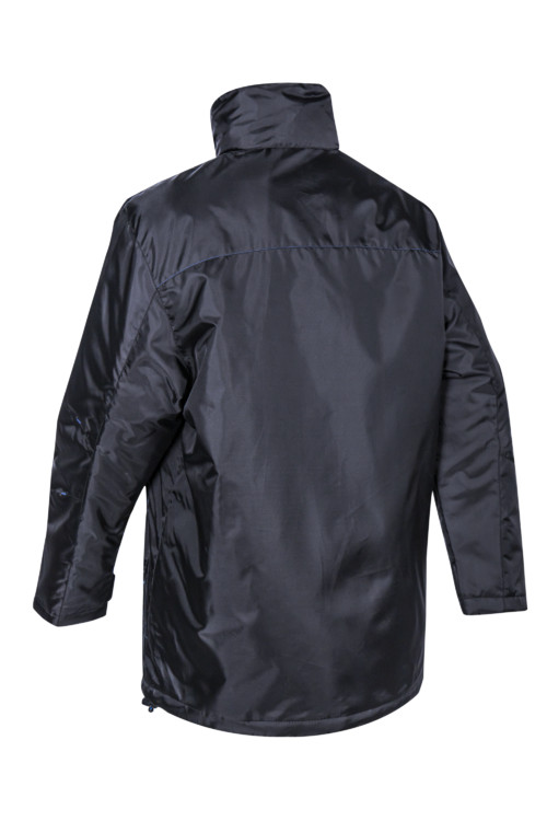 Panda fekete/kék télikabát* Oxford: PU-val borított 100% poliészter 250D x 200D* Melegbélés: 100% poliészter - 160 g/m2 (testen és az ujjakon) és 80 g/m2 a galléron* Polárral bélelt álló gallérba rejtett Oxford alapanyagú kapucni rugalmas húzózsinórral* Tépőzáras hajtókával fedett cipzár* Tépőzárral állítható mandzsetta és rugalmas húzózsinórral állítható aljrész* 1 paszpólos fedett cipzáras mellzseb, 2 paszpólos fedett cipzáras alsó zseb, 1 cipzáras, kontraszt színű zseb a kabát ujján, 1 tépőzáras belső zseb* Szitázható