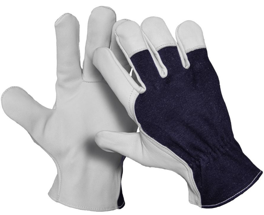 kombinált kesztyű puha kecskebőrbőlpuha kecskebőrrel bevont tenyér és ujjaklélegző kötött pamut elasztikus csuklótájéki gumivaljó fogási tulajdonságokAnyag: kecskebőr, pamutMéretek: 8, 10CAT 1EN 4201/10/100