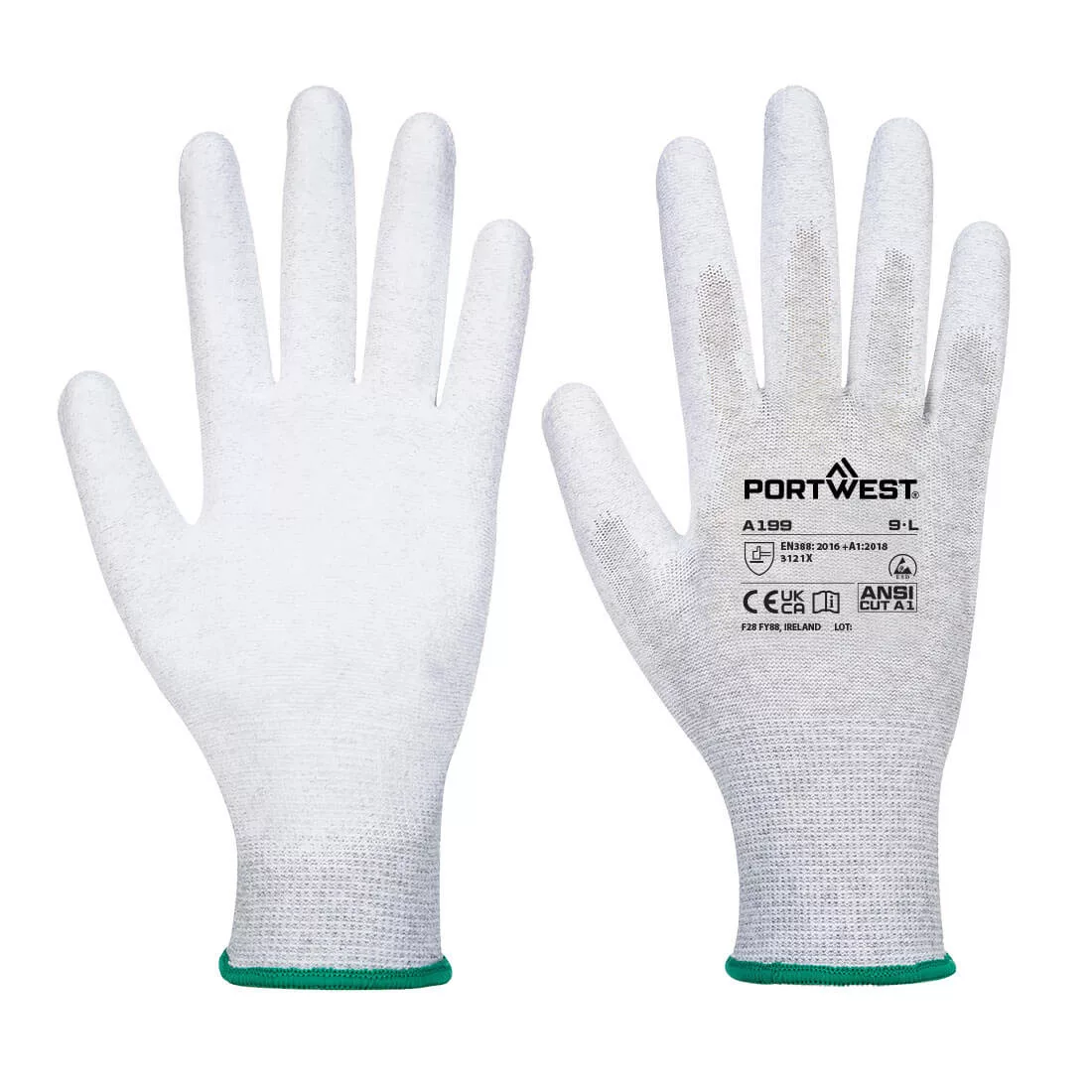 Alkalmas ESD környezetben történő használatra. Antisztatikus Tenyér bevonat, mely jobb fogásbiztonságot és szellőzést biztosít. Sima PU bevonat, mely fokozott kopásállóságot biztosít. 13-as kötéssűrűség a tartósság és a pontos illeszkedés érdekében. Légáteresztő varrat nélküli bélés. CE minősítés