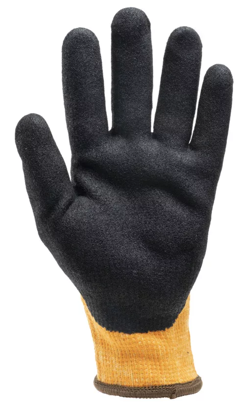 EUROHEAT DEX kesztyű, narancssárga varrat nélküli kötött, 10-es, poliészter és aramid alap, hurkolt belső, homokos felületű nitril tenyérbevonat, kötött csukló.