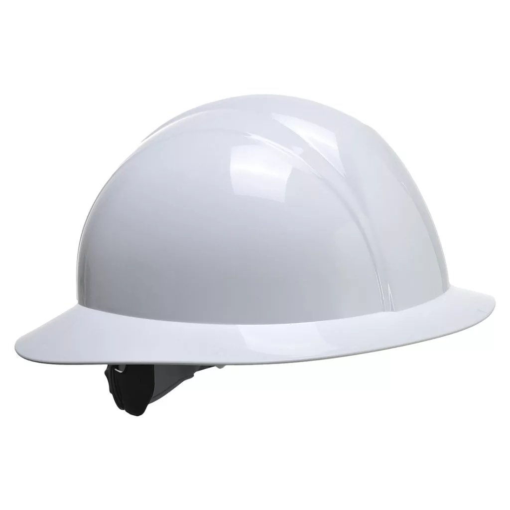 Teljes karimájú védősisak: a széles profil extra védelmet nyújt a napfény, az eső, a törmelékek és a nem mérgező fröccsenések ellen