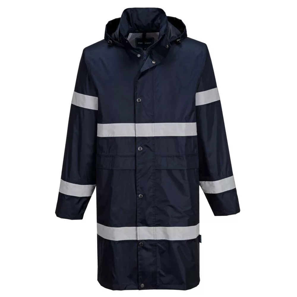 A könnyű és praktikus Iona esőkabát 100cm vízálló védelmet és fokozott láthatóságot biztosít. Rejtett kapucnival, nagyméretű zsebekkel és szellőzőnyílásokkal készül.