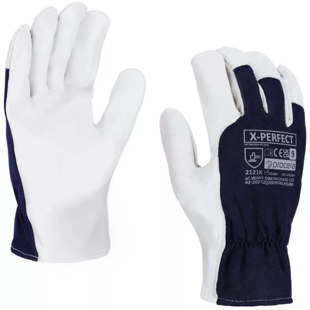 X-PERFECT kesztyű kecskebőr markolatrésszel. Felső része elasztikus pamutszövetből készült sötétkék színben. Elasztikus mandzsettával befejezve. Nagyon jó tapadás, magas kopásállóság jellemzi. CE EN 388. Csomagolás: karton 12/120. Szín: sötétkék/fehér.