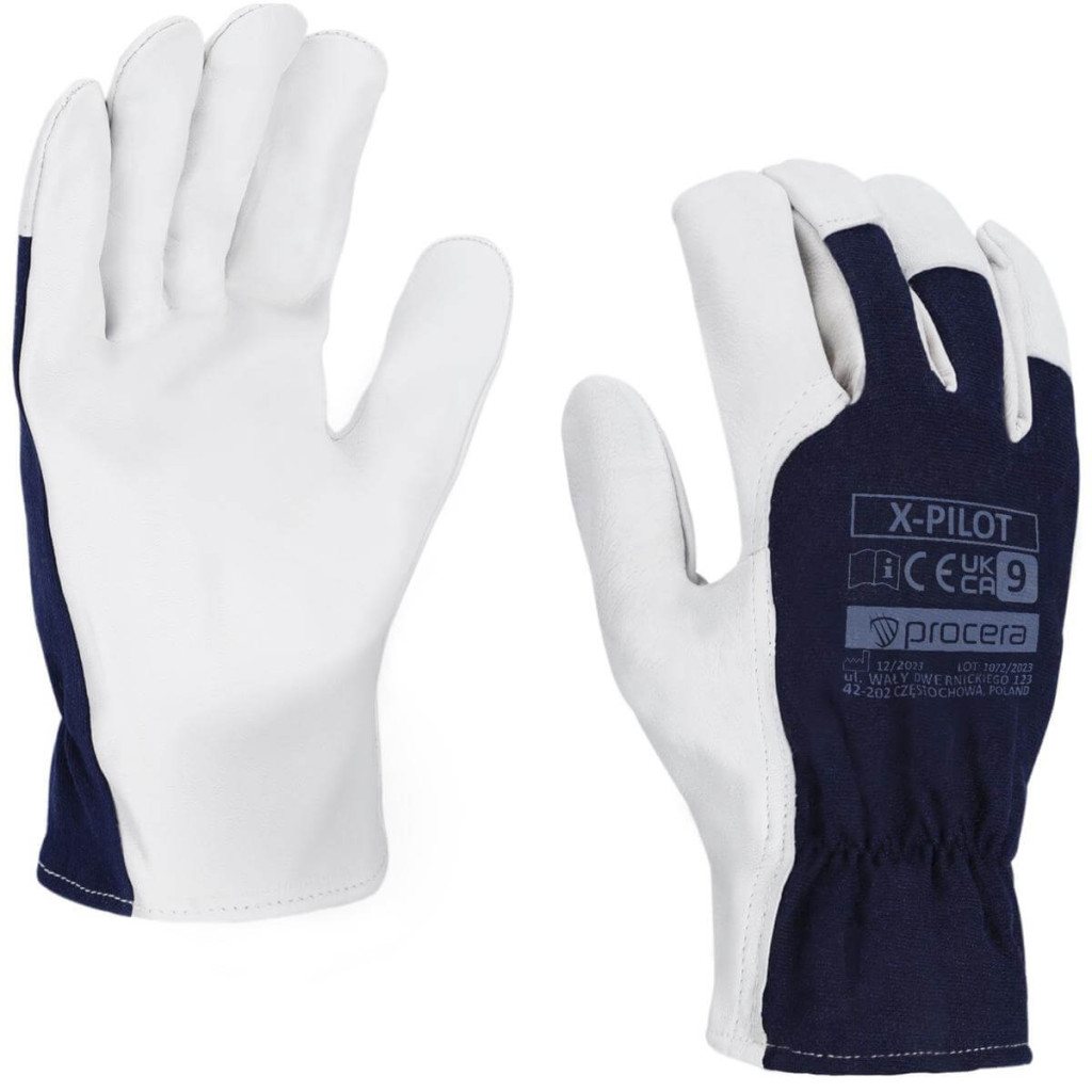X-PILOT kesztyű kecskebőr markolatrésszel. Felső része elasztikus pamutszövetből készült sötétkék színben. Elasztikus mandzsettával befejezve. Tökéletes minden gépészeti és háztartási munkához. Nagyon jó a kézügyesség és fogás is ebben a kesztyűben. CE EN 420. Csomagolás: karton 12/120. Szín: sötétkék/fehér.