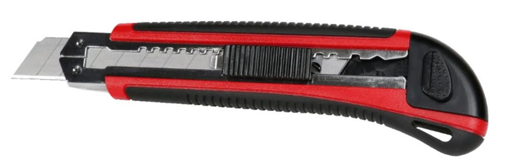 bimateriális ergonomikus testa zárgomb a pengét a kívánt helyzetben tartja vágás közbenkönnyű, biztonságos és gyors pengecsereuniverzális felhasználás – fa, gipszkarton, karton, stb. VágásaPengevastagság: 0,5 mmA vágóél szélessége: 18 mm