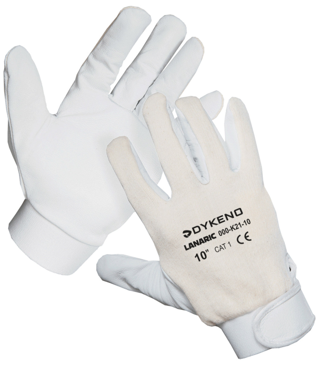 kombinált Lanaric kesztyű finom kecskebőrből megerősített tenyér és ujjhegyekbélés nélküli pamutszövet hátrészrugalmas tépőzáras mandzsettarészSZABVÁNYOK: CAT 1 ; EN 420Csomagolás: 1/10/100Méretek: 8" és 10