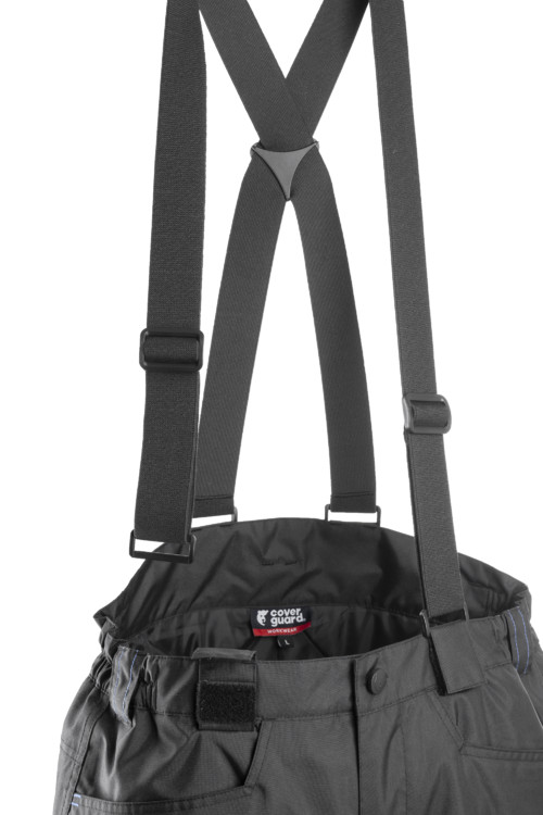 Oxford: PU bevonatú 100% PES 300D Oxford + 100 g/m2 melegbélés + Fancy Oxford 500D* Ragasztott varrások* Hosszított hátrész* Gumírozott derékrész + övbújtatók* Állítható elasztikus vállpántok* 3 zseb* Térdvédő zsebek* Víz szigetelt szárak