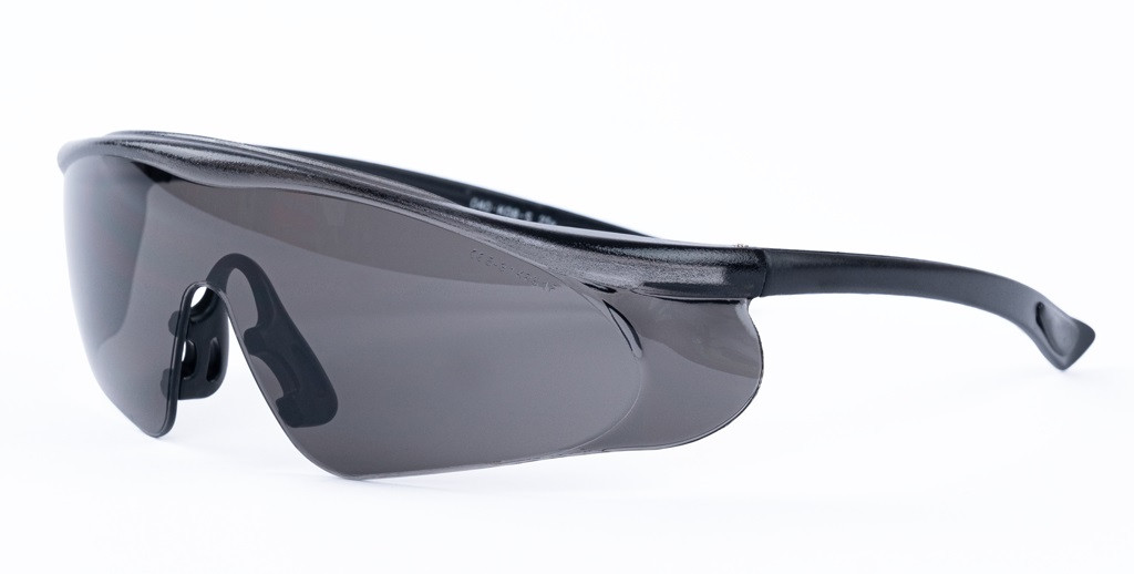 a nagyobb látómező érdekében oldalt meghosszabbított polikarbonát látómezős szemüveg