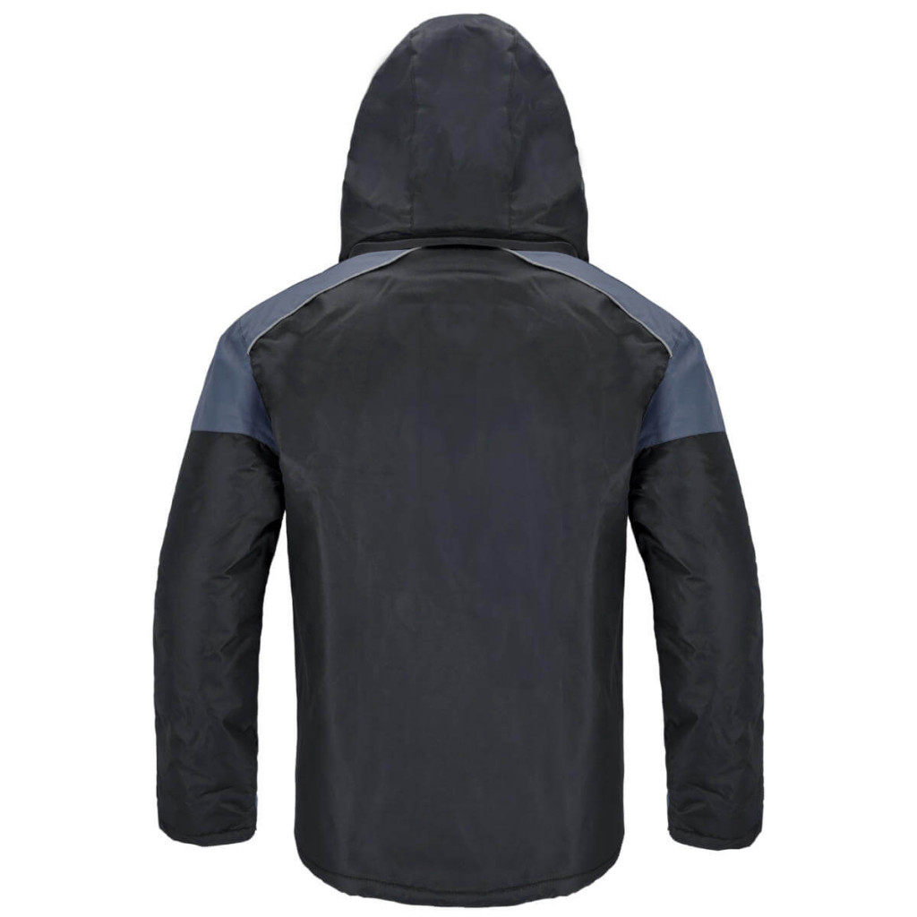 A kabát 100% tartós poliészterből készült, belülről gyapjúval szigetelt, cipzárral és tépőzárral záródik. Két mellzsebbel, két cipzáras, patentos alsó zsebbel és egy tépőzáras zsebbel rendelkezik a kabát belsejében. Tépőzárral állítható ujjak. Levehető, gyapjúval bélelt kapucni húzózsinórral és további tépőzárral, amely védi a fejet a hideg és az időjárási körülmények ellen. A kabát alsó szegélye állítható. Méretek: S - XXXL. Csomagolás: 1/10 karton.