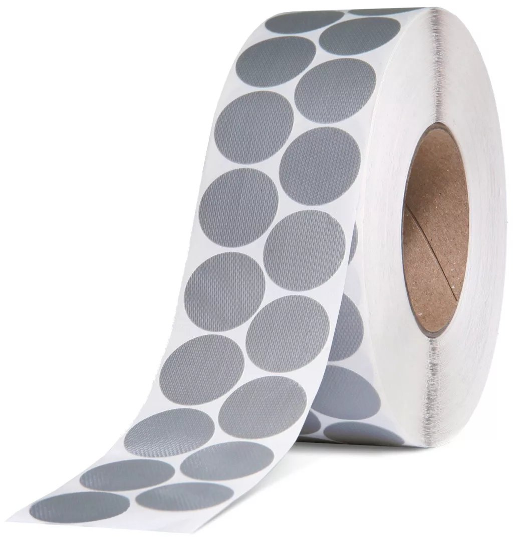 öntapadó elem, szürke-ezüst színűjó azonnali tapadás különféle típusú felületekhezjó hőmérsékleti és UV-ellenállásátmérője 30 mm2 sor, 3000 db tekercsenAlkalmazás: információs címkék rögzítése stb., Ideiglenes tárolásra is alkalmashordozó: PE bevonatú anyagból készültragasztó: SOLVENTvastagság: 0,24 mmhőmérsékleti ellenállás: -20 ° C és +65 ° C közöttCsomagolás: 1/16Szélesség / tekercselés: 2 sor, átmérő 30 mm / 3000 db