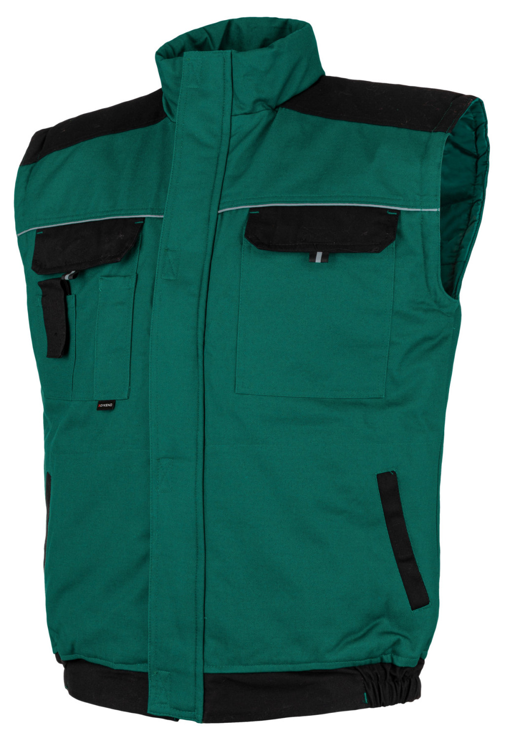Primo mellénybélelt mellénymellkasi zsebek, mobil- és ceruzatartó zsebtépőzáras zsebekelöl-hátul fényvisszaverő kiegészítőkteljes hosszúságú cipzár dekorsávval, a nyakrészen tépőzárralaz oldalakon elasztikus gumia nagy előnye a megerősített vállrészszin: zöld - feketeanyag: 100% pamut, 270 g/m2, 100% poliészter bélésMéretek: S - 3XLSZABVÁNYOK: EN ISO 13 688 (EN 340)Szín: Zöld-fekete