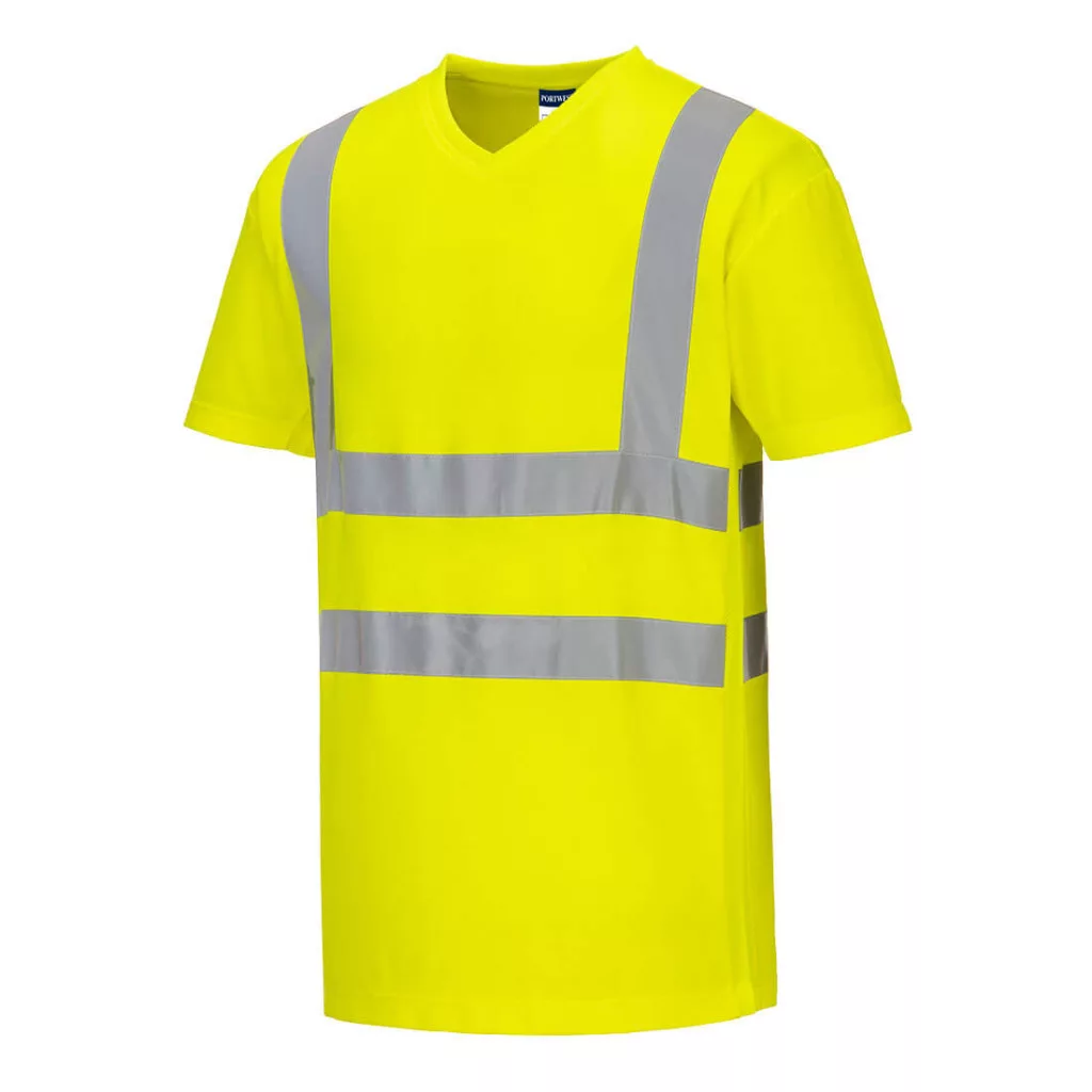 Ez a modern, V-nyakú póló a Cotton Comfort alapanyag kiváló minőségét ötvözi a légáramlást biztosító oldalsó hálórésszel és a fényvisszaverő szalag 4 cm-es szélességével az extra kényelem érdekében. Ez a ruházat hűvösen tartja viselőjét magas hőmérsékletű munkakörnyezetben.