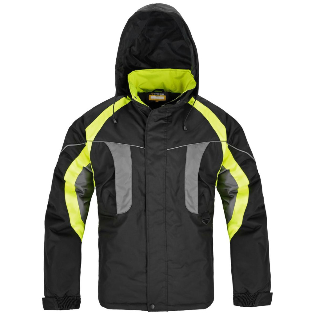 Szigetelt kabát steppelt poliészter béléssel és 100% impregnált poliészterből készült külső réteggel. Cipzárral és zárt lécekkel zárható. Két cipzáras, patenttal fedett mellzsebbel, két cipzáras alsó zsebbel és egy belső zsebbel rendelkezik. A további tépőzárral záródó tépőzáras ujjak növelik a kényelmet, miközben javítják a hőszigetelést. A kapucni húzózsinórral összehúzható, és teljesen elrejthető a gallér stigmájában. Szín: fekete/����/szürke. Méretek: S- XXXL. Csomagolás: 1/10 karton