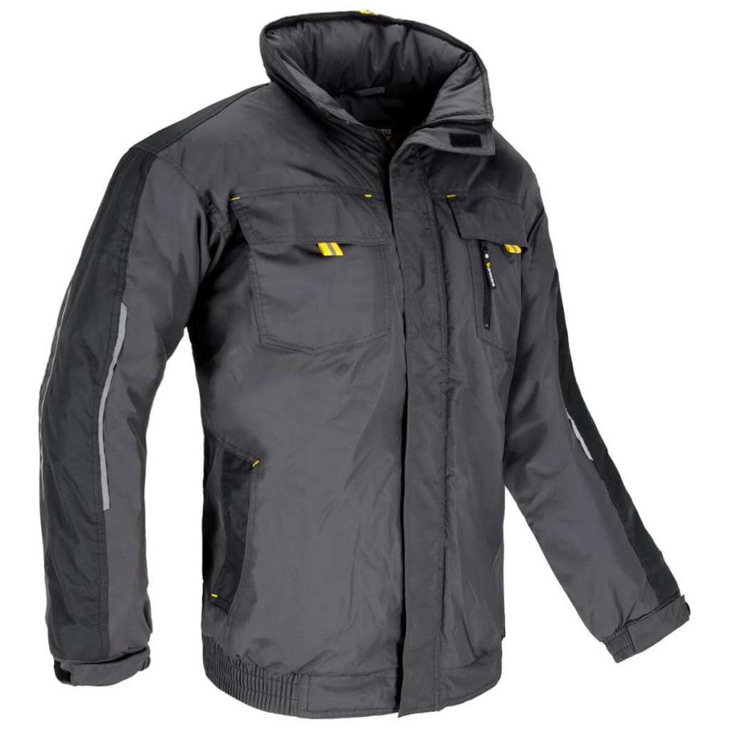 Bélelt kabát poliészter béléssel és 100% impregnált poliészter külső réteggel. Tépőzárral borított cipzárral rögzíthető. Három mellkasi zsebbel rendelkezik - ebből kettő tépőzáras és egy cipzáras, két alsó és két belső zseb - köztük egy zseb a tartozékok számára. Az elasztikus mandzsettájú ujjak és a kiegészítő tépőzáras rögzítés növeli a kényelmet, miközben javítja a hőszigetelést. A kabát alja állítható húzózsinórral, mely további védelmet nyújt a szél és a hideg ellen. Szín: fekete. Méretek: S-XXL. Csomagolás: 1/10 karton.