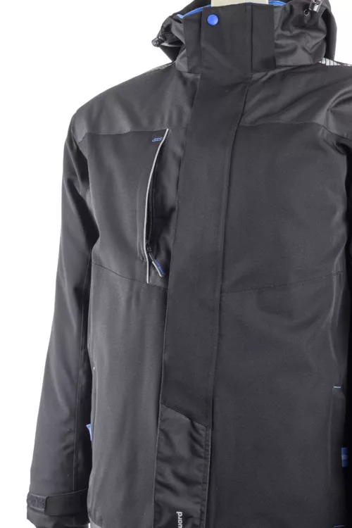 Tamia fekete softshell télikabát* Két rétegű Softshell: 92% poliészter, 8% elasztán, TPU membrán – 235 g/m2 vastag * OXFORD: 100% poliészter - 300D* Melegbélés: 100% poliészter – 120 g/m2* Polár bélés: 100% poliészter – 130 g/m2* TAFT bélés, 100% poliészter - 60 g/m2 (ujjak)* Vízállóság: 5000 mm, légáteresztés: 600 g/m2/24h* Fényvisszaverő betétek, fedett varrások* Rugalmas zsinórral állítható rejtett Oxford kapucni a gallérba integrálva * Polár béléses álló gallér, tépőzáras hajtókával fedett cipzár * Bordázott, szélálló, tépőzáras mandzsetta * 1 cipzáras felső zseb, 2 cipzáras oldalzseb, 2 tépőzáras belső zseb * Rugalmas zsinórral állítható aljrész