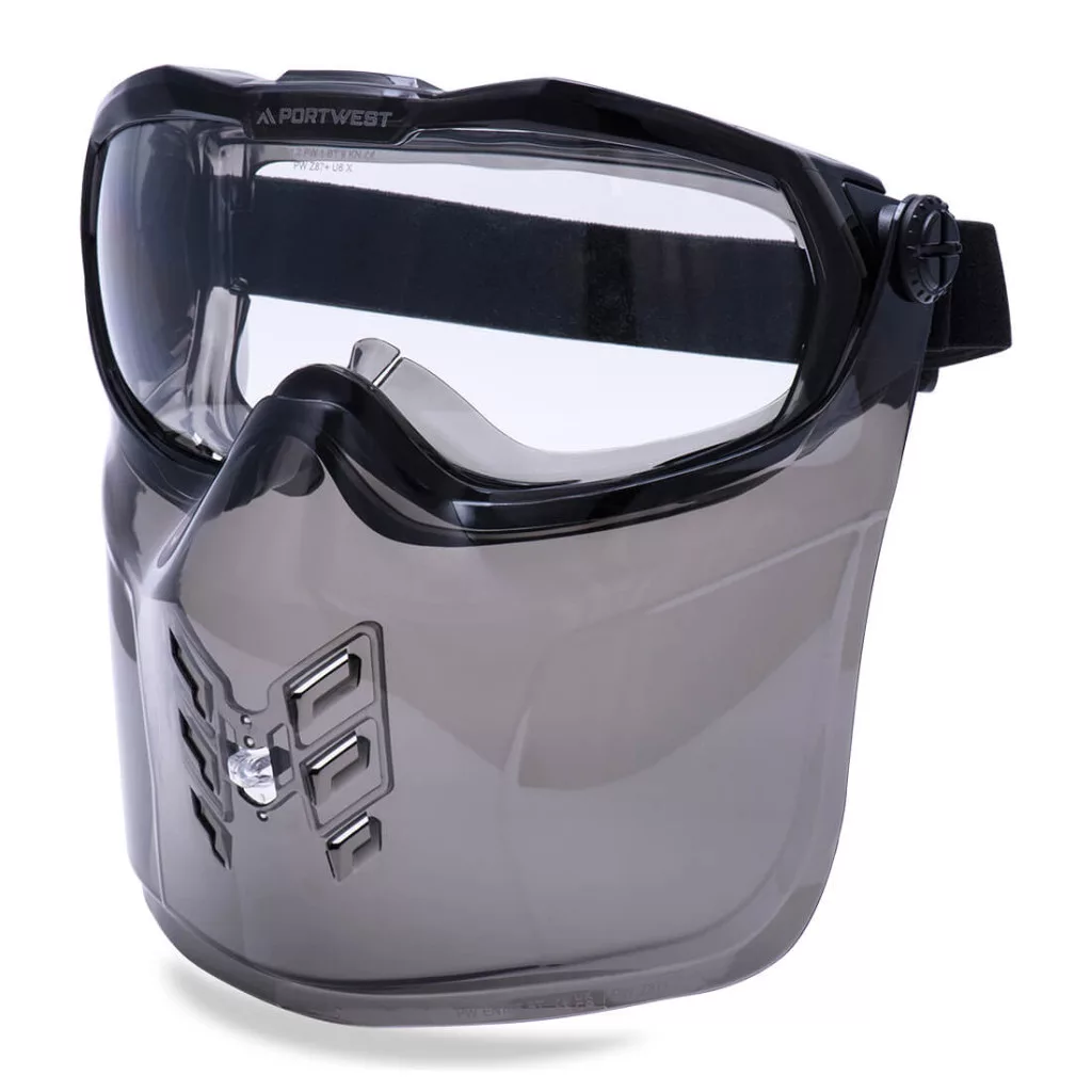 Prémium védőszemüveg a fokozott szem- és arcvédelem érdekében. A folyadékcseppektől, nagy porszemcséktől, olvadt fémtől és forró szilárd anyagoktól való védelemre tervezett teljes sorozat a veszélyes környezetben való biztonságos munkavégzés érdekében elengedhetetlen. Az állvédő kényelmesen felhajtható készenléti üzemmódba, amikor nincs használatban, és a maximális kényelem érdekében csúszka segítségével állítható szellőzőnyílásokkal rendelkezik. Ráadásul a közvetett szellőzésű védőszemüvegünk a legtöbb vényköteles szemüveg fölé is felvehető, így biztosítva, hogy Ön minden körülmények között védve maradjon.