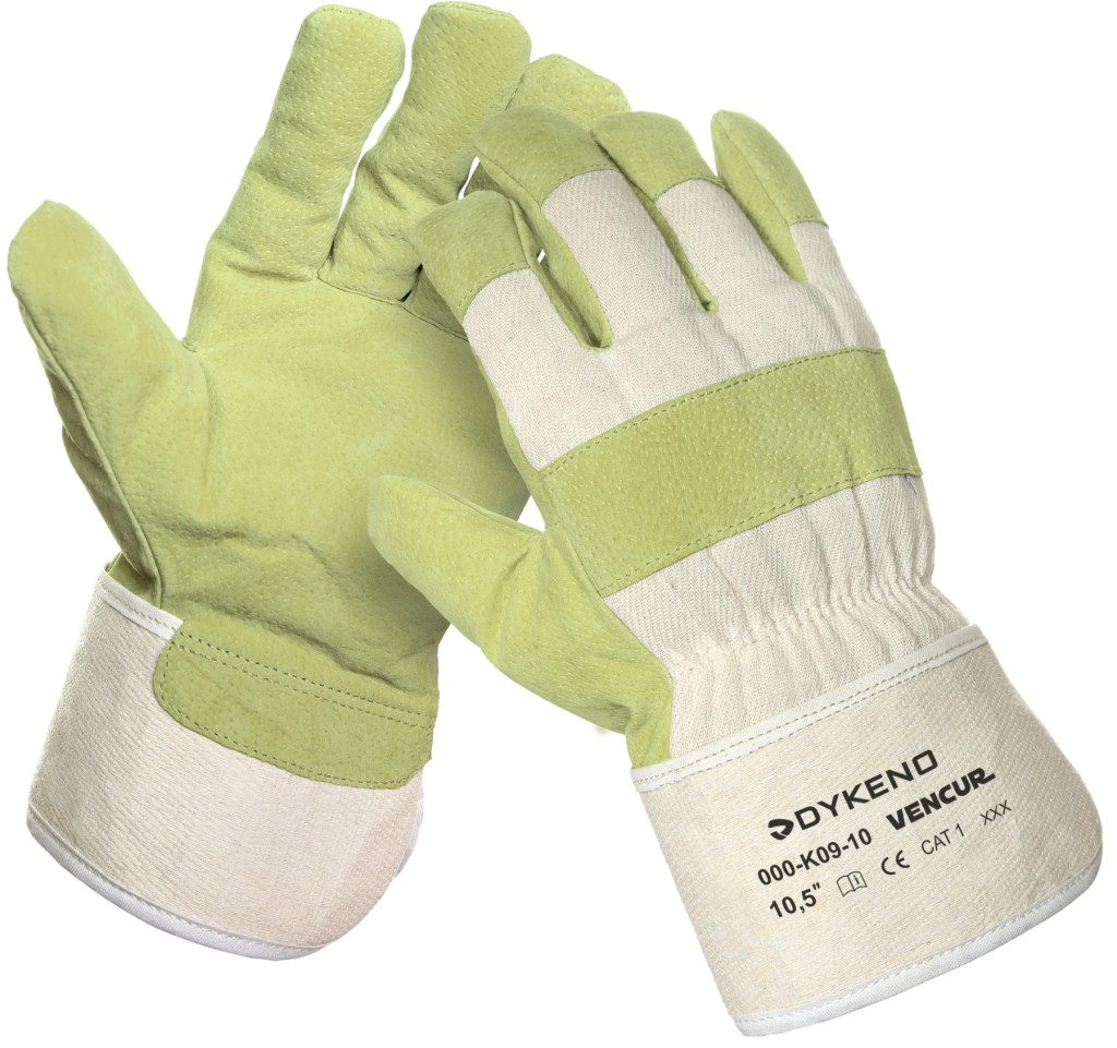 Vencur kombinált kesztyűpamut kézhát és hasított sertésbőr kombinációjávalmegerősített, enyhén gumírozott anyagmandzsettaoptimális kényelemjó mechanikai ellenállóképességSZABVÁNYOK: CAT 1 ; EN 420Csomagolás: 1/10/100Méretek: 10,5