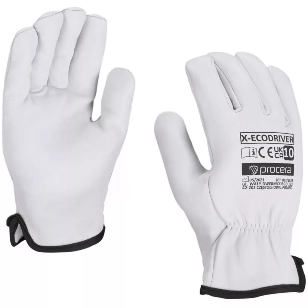 X-ECODRIVER teljes kecskebőr kesztyű. Kényelmes gumis mandzsettával. Tökéletes általános, gépészeti, szállítási és egyéb munkákhoz. Nagyon jó tapadás, magas kopásállóság jellemzi. CE EN 21420:2020. Csomagolás: karton 12/120. Fehér szín.