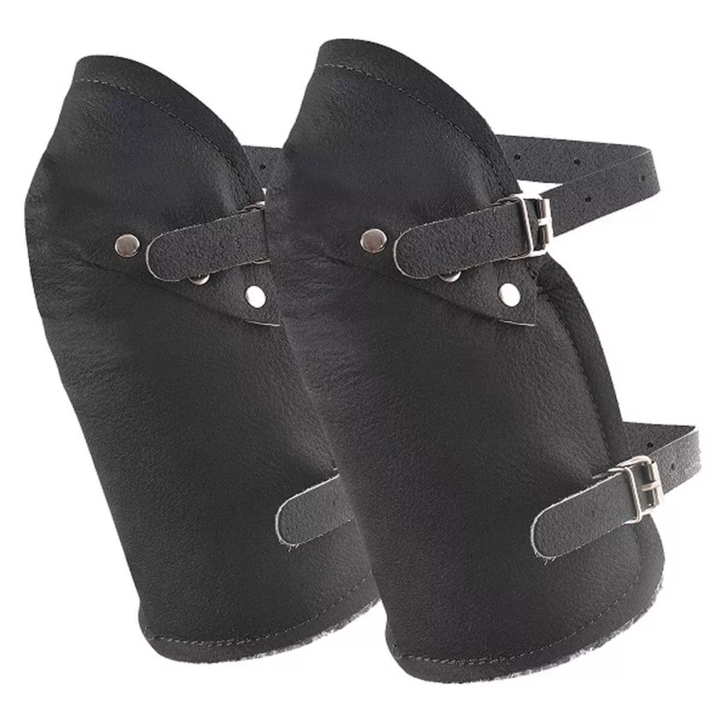 Bőr térdvédő tehénbőrből készült hasított bőrből, nem gyúlékony kivitelben. Az illesztések stb. szegecsekkel tartósan kikészítettek. A bőr átlagos vastagsága 1,4-2,4 mm. Cat. I