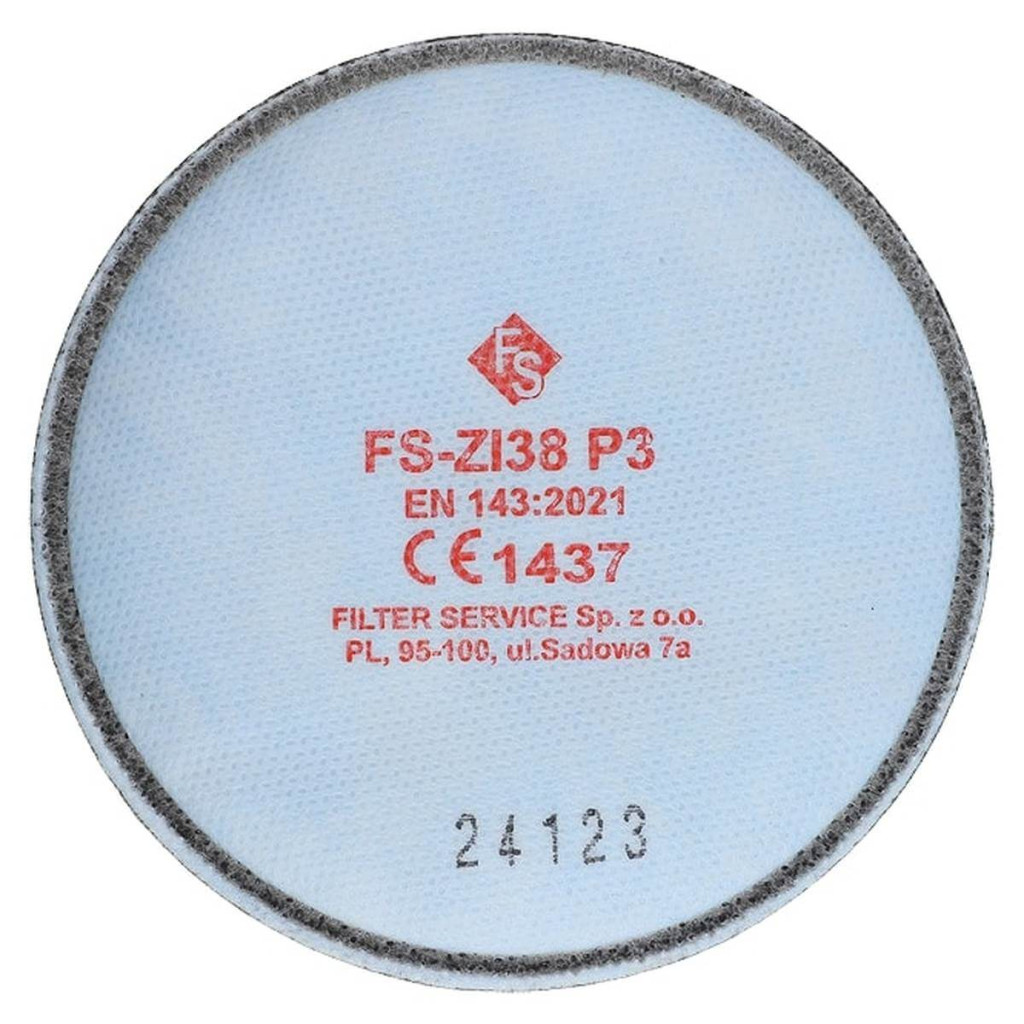 Használat: A 3M 2138 termék alternatívájaként alkalmazható. A 3M 6000 és 7500 sorozatú félálarcokkal együtt használva hatékony védelmet nyújt: • szilárd részecskéket tartalmazó aeroszolok (por, füst), • vízbázisú aeroszolok (köd), • valamint diszpergált fázisú folyadékalapú aeroszolok ellen, feltéve, hogy az aeroszol koncentrációja nem haladja meg az 50 x NDS értéket. Továbbá az aktívszenes szűrőréteg révén az FS-ZI38 P3 modell alkalmas az egészségre ártalmas szerves gőzök elleni védelemre is, az NDS határérték alatt. További előnyök: • Bagnetzáras rendszerrel csatlakoztatható a félálarcokhoz • Kompatibilis a 3M 6000-es sorozatú szűrőbetétekkel (3M-502 adapterrel) • Legalább 99%-os szűrési hatékonyság • Könnyű és kényelmes viselet Összetétel – szűrő felépítése: • Tűzött poliészter szűrőréteg • „Melt blown” típusú polipropilén réteg • Aktívszenet tartalmazó szűrőréteg • Fedőszövet (védőréteg) Kiegészítő elemek: • Bagnetzáras csatlakozó Műszaki adatok: • Kategória: Pormaszk szűrők • Osztály: P3 • Megengedett határérték: 50 x NDS • Szabvány: EN 143:2021 • Tanúsítvány: CIOP PIB által kiállított, EU/919/2023/1437 számú, 1. kiadás • Megfelel az Európai Parlament és a Tanács 2016. március 9-i 2016/425 számú rendeletének az egyéni védőeszközökről.