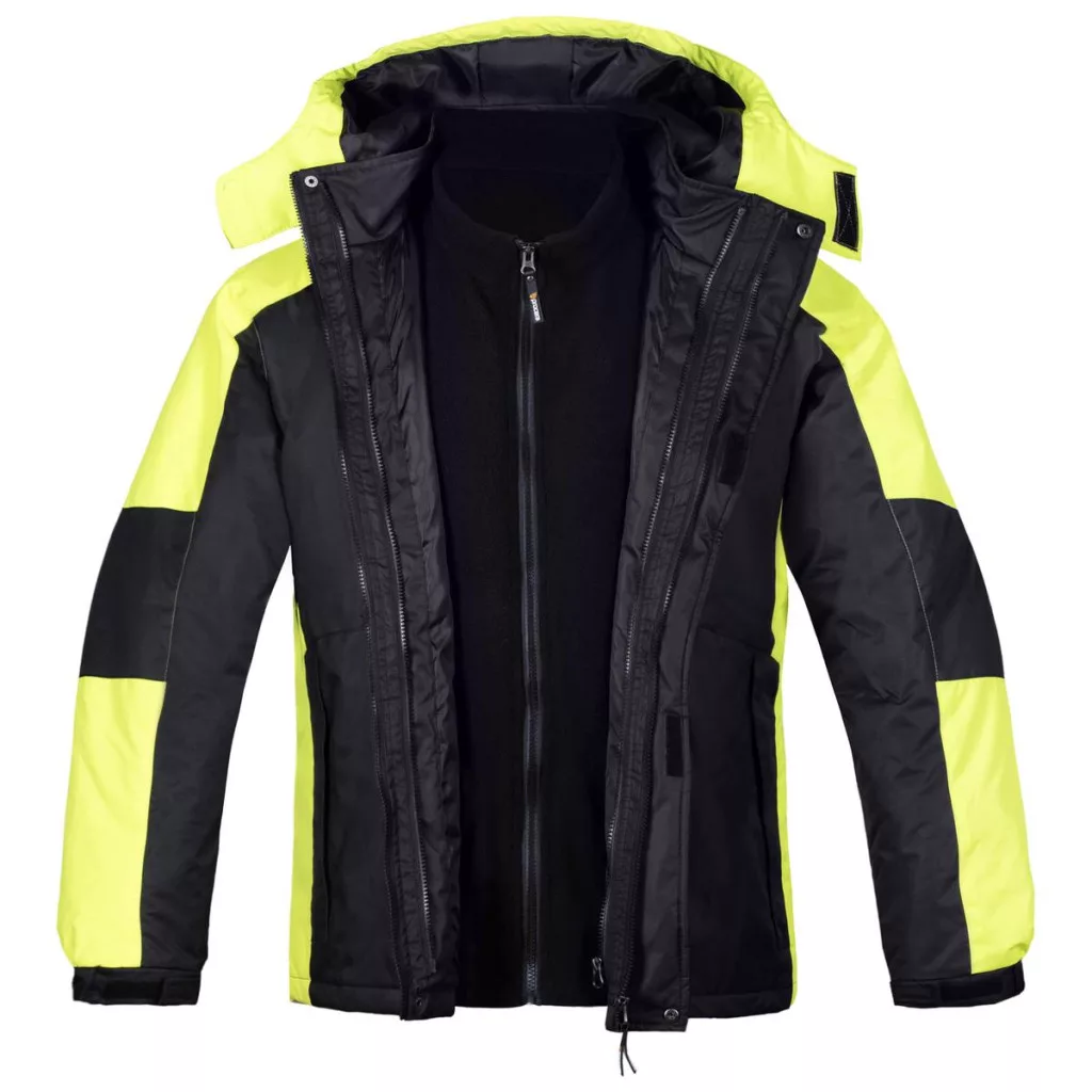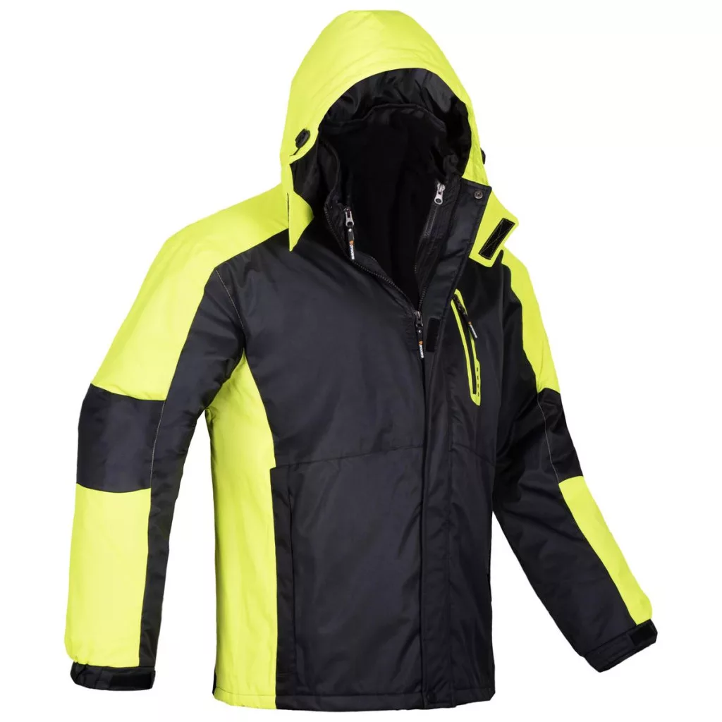 PROCERA ASPEN 3 az 1-ben kabát fekete színben, sárga betétekkel. Háromféleképpen viselhető: kabát polár béléssel, könnyű kabát bélés nélkül, illetve a bélés külön polár pulóverként. A főcipzárt patentos és tépőzáras hajtóka fedi. Az oldalzsebek és a mellzseb cipzárral zárhatók. A lecsatolható kapucni stopperrel állítható. Az ujjak végén tépőzáras bőséghúzó biztosítja a jobb illeszkedést. A termék megfelel a PN-EN ISO 13688:2013 szabvány követelményeinek. Csomagolás: 1/10 karton.