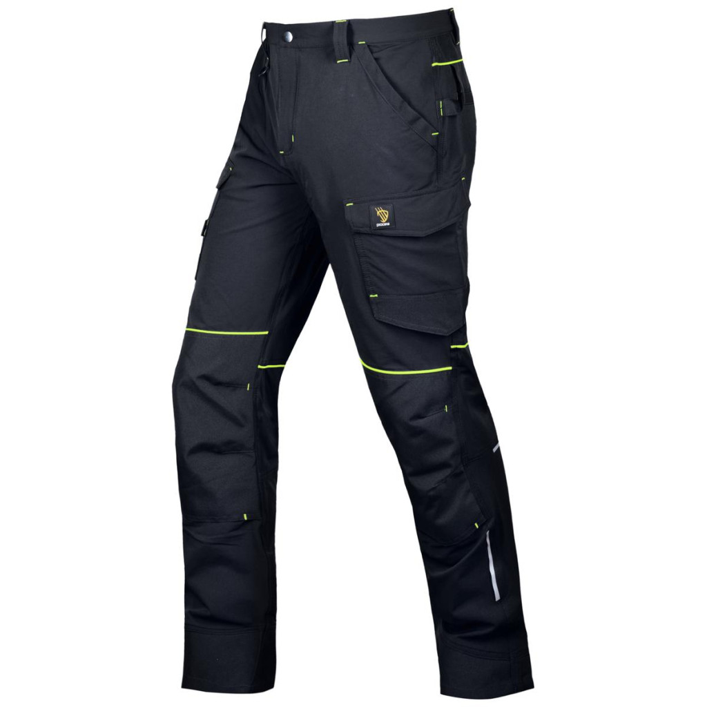 A nadrág 4-way stretch anyagból készült, anyagösszetétele 92% poliészter és 8% elasztán, anyagsűrűség 250 g/m², színe fekete fekete Oxford megerősítésekkel és neonzöld paszpólokkal. A nadrág két rátett oldalzsebbel rendelkezik patenttal, azonosító tartóval, nyitott hátsó zsebbel, oldalzsebekkel Oxford anyagból készült fedéllel, valamint hátsó fedett zsebbel. A zsebek, térdek és nadrágszár alja Oxford anyaggal megerősített. Eszközök rögzítésére szolgáló fülek találhatók a zsebeknél és az elülső övszemnél. A térdek profilozottak, a belső és külső nadrágszár varrások háromszorosak, a nadrágszár alján fényvisszaverő elemek találhatók. A termék megfelel a PN-EN ISO 13688:2013 szabvány követelményeinek.