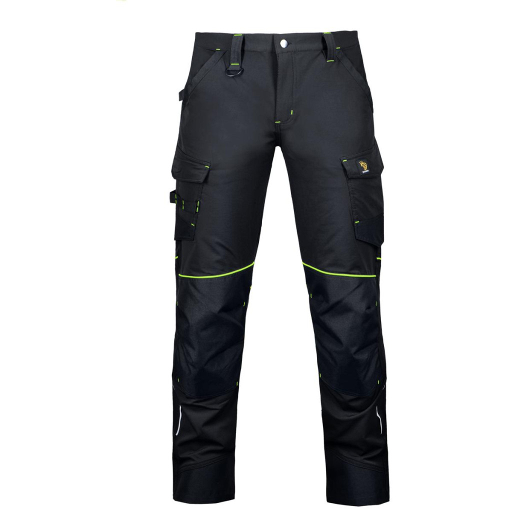 A nadrág 4-way stretch anyagból készült, anyagösszetétele 92% poliészter és 8% elasztán, anyagsűrűség 250 g/m², színe fekete fekete Oxford megerősítésekkel és neonzöld paszpólokkal. A nadrág két rátett oldalzsebbel rendelkezik patenttal, azonosító tartóval, nyitott hátsó zsebbel, oldalzsebekkel Oxford anyagból készült fedéllel, valamint hátsó fedett zsebbel. A zsebek, térdek és nadrágszár alja Oxford anyaggal megerősített. Eszközök rögzítésére szolgáló fülek találhatók a zsebeknél és az elülső övszemnél. A térdek profilozottak, a belső és külső nadrágszár varrások háromszorosak, a nadrágszár alján fényvisszaverő elemek találhatók. A termék megfelel a PN-EN ISO 13688:2013 szabvány követelményeinek.