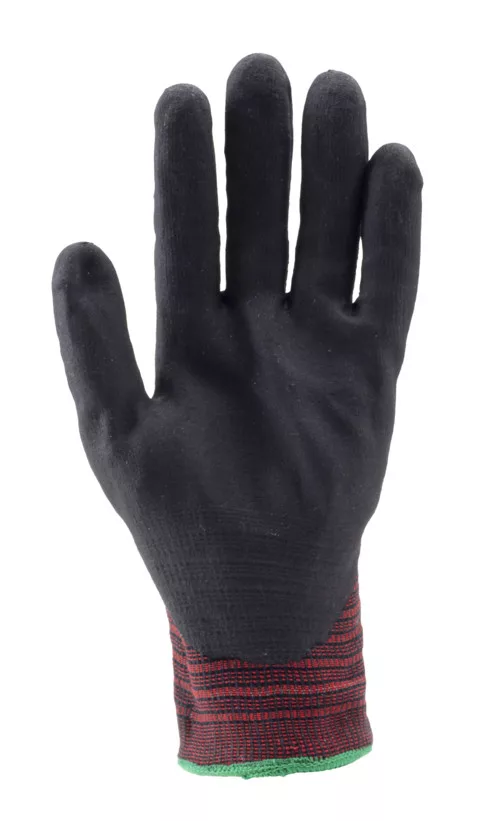 * maximális szakítás- és kopásállóságú, a legmagasabb F szintű TDM vágásbiztossággal, 18-as kötésű, vékony multiszálas (HDPE, para-aramid és spandex alapanyagú) fekete védőkesztyű