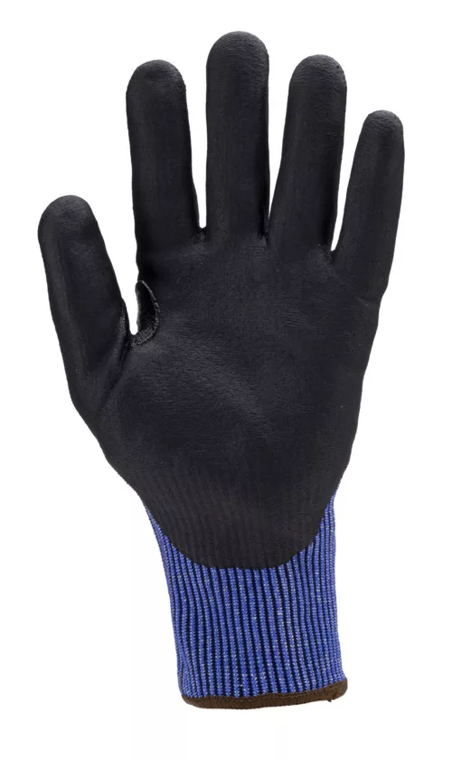 * maximális szakítás- és kopásállóságú, C szinten TDM vágásbiztosságú, 13-as kötésű, multiszálas (HDPE, poliészter és spandex alapanyagú) kék fogásbiztos védőkesztyű