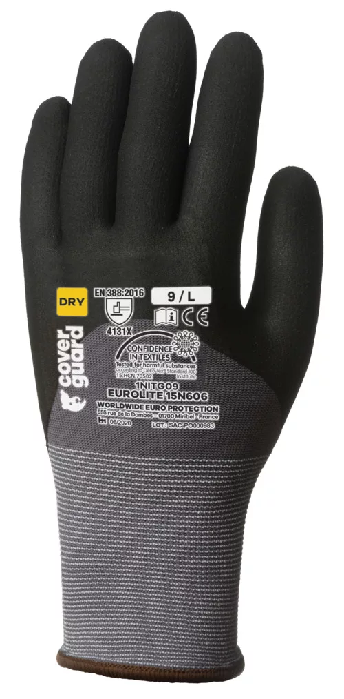 * 15-ös kötésű, erős szakítás- és kopásállóságú szürke nylon / spandex * ökölcsontig fekete szellőző mikrohabosított nitrillel mártott * szellőző kézhát, gumírozott mandzsetta * könnyű, kiemelten komfortos, teljesen kézre simuló formai kialakítás, tenyerén és a kézháton is egyaránt biztosított szellőzésselOEKO-TEX STANDARD 100 minősítés , CQ 1301/1, IFTH vagy 15.HCN.70502, HOHENSTEIN