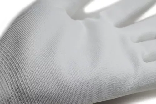 * Fehér, finom, poliamid, varrás nélküli, 13-as kötésű védőkesztyű