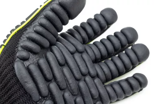 EUROSTRONG VIBE 7-es kötésű, varrás nélküli, fekete poliészter alapkesztyű* 4 rétegű latex tenyérbevonat * TPR megerősítések a kéz és az ujjak hátoldalán* Kötött mandzsetta * Rezgéscsillapítási szintek: T[M] 0,738 - T[H] 0,577